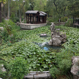 Terminata la visita al tempio, il percorso all’interno del parco prosegue seguendo un luminoso e fresco sentiero fra gli alberi, circondati da lanterne e altre suggestive decorazioni della tradizione cinese. A un certo punto il visitatore troverà sulla propria destra una scalinata in pietra, che lo condurrà all’ingresso di due luoghi imperdibili. Il primo è costituito dal Qingfeng Pavilion, le cui forme ci riportano con la mente alle illustrazioni di antiche leggende cinesi.